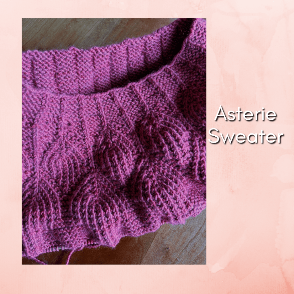 Next up, I’ve just finished the patterned yoke on the Asterie sweater by Natasha Hornsby. I’m using Woolberry Fiber Co nonsuperwash wool Berry DK base in the colorway Burgundy. I’ve got a few rounds of garter stitch to work and then I can divide for the sleeves/body.