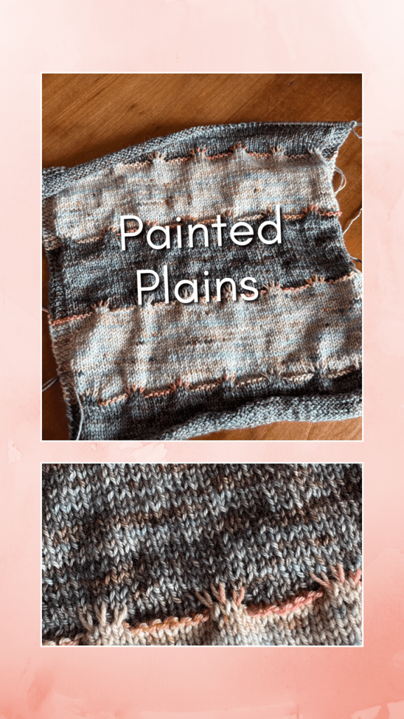 Painted Plains wrap: I did some maths on this one to make it more like a very generous scarf and not really a wrap. I also omitted the zigzag cast-on edge (and will mirror that with plain garter stitch edging on the cast-off end too). I am using stash yarns – Six and Seven Fiber’s Alfalfa (MCN base) and Milo (merino/nylon base) mini for the light blue and the contrast colors, respectively, and Lambstrings Yarns Faun (MCN base) for the darker gray-blue. The contrast mini is the orange-y color and it’s an easy slip-stitch pattern but I really love how it breaks up the stockinette. This is my mindless piece to work on since it’s mostly stockinette. It’s earmarked for a holiday gift so I’ve got time to work on it.