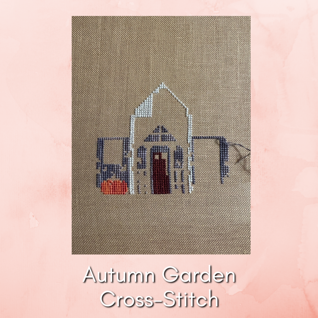 I also put in a few more stitches on my Autumn Garden cross-stitch. I’ve got the bare bones of the central house stitched, and I had to add one of the pumpkins, just to see how that looked.