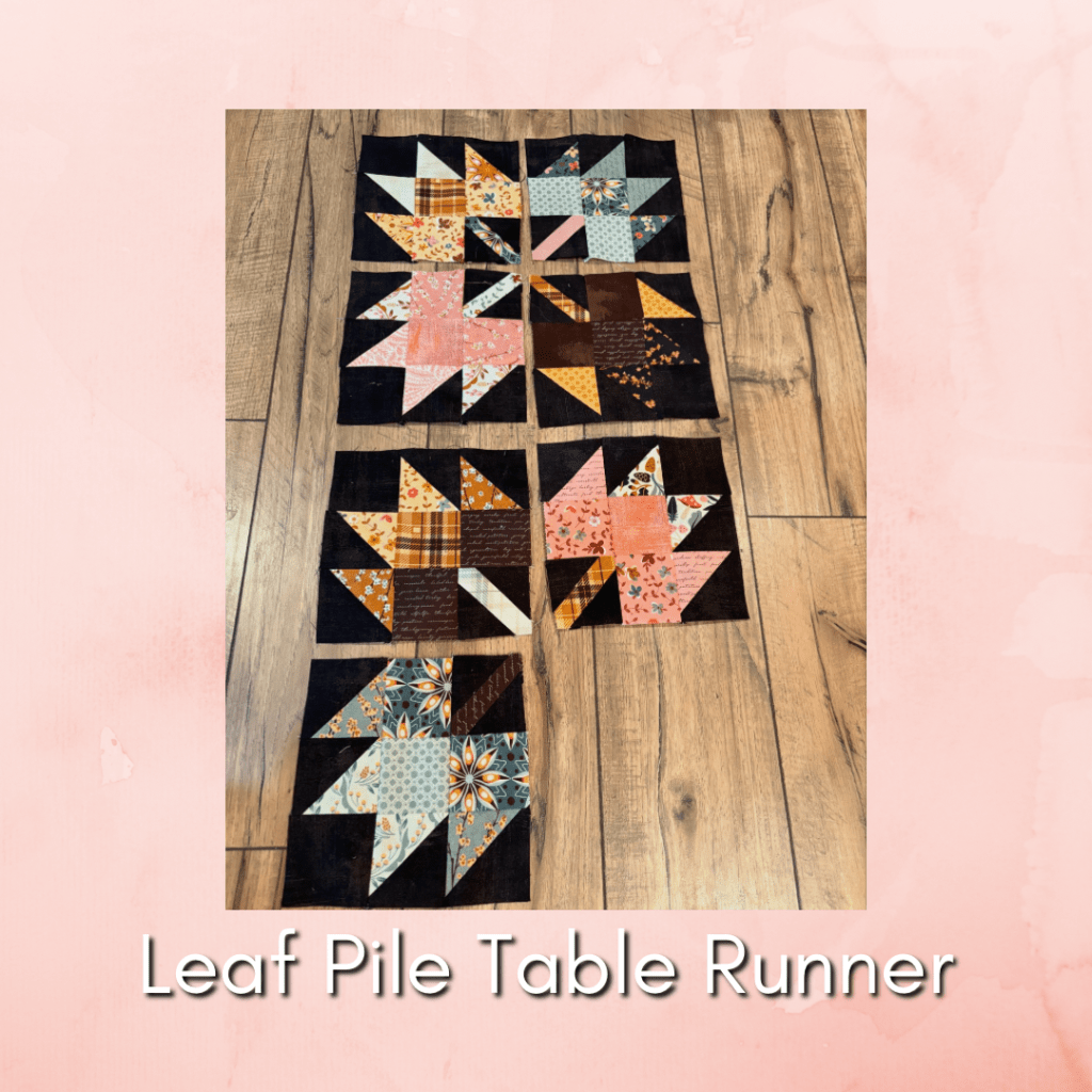 Finally, speaking of table runners, I started this kit for the Leaf Pile table runner that uses fabrics from the Acorn Hollow line. I love these colors together and the fabric (which is also the backing) with the little woodland animals is my favorite.