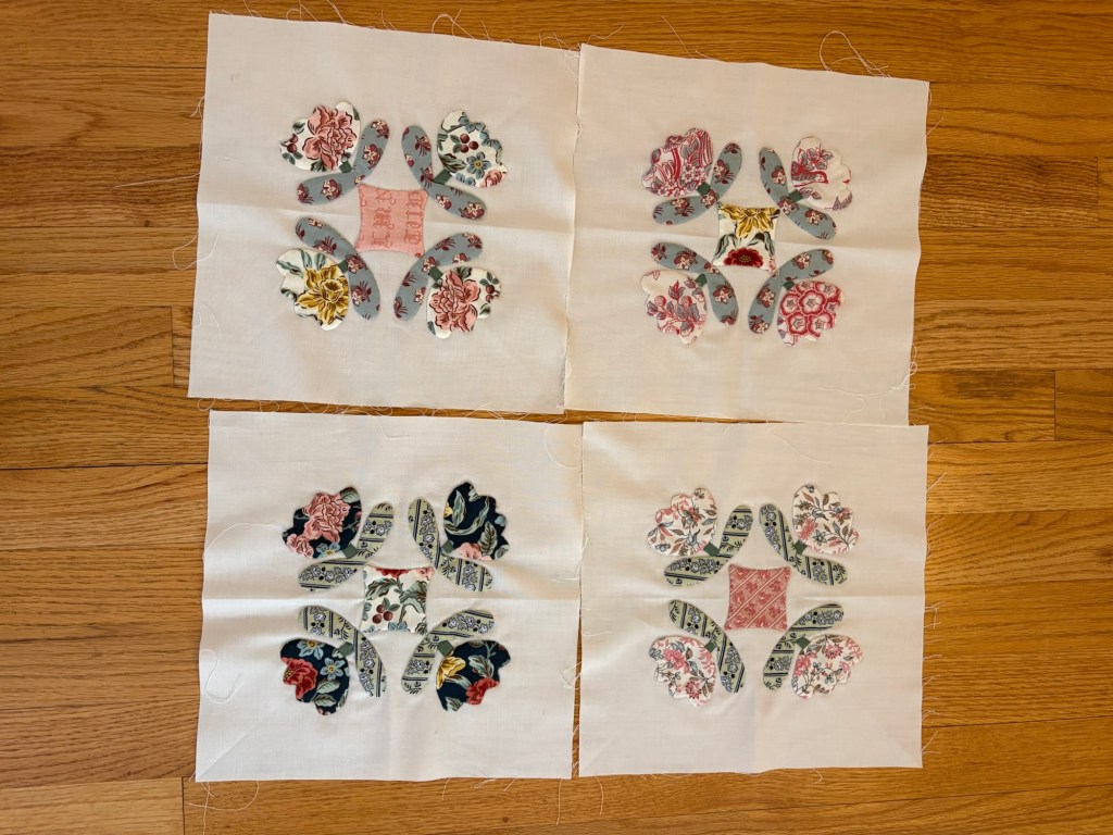Jane Austen 250th Anniversary Quilt – Block of the Month #4: While not a complete finish, I did get the 4 blocks from the November BOM shipment completed this week and those are pressed and hanging with the others while I keep moving forward on block construction.