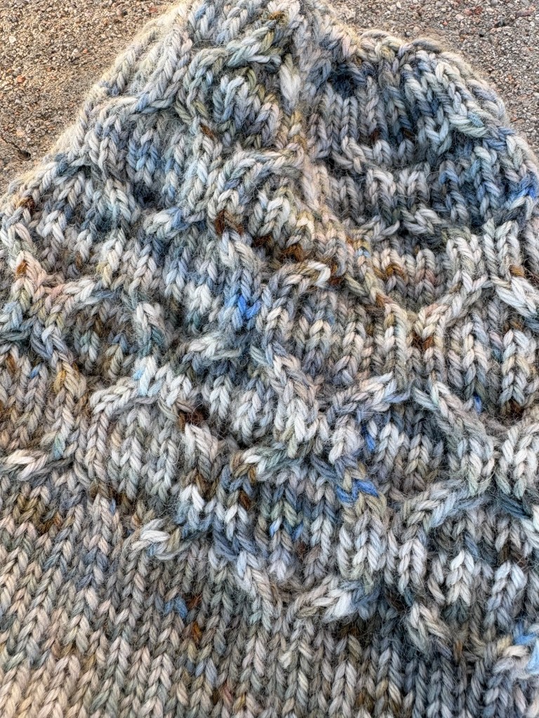 I feel like this color is very unisex and the cables make it very warm and squishy, so I think it’ll be a great donation box addition.