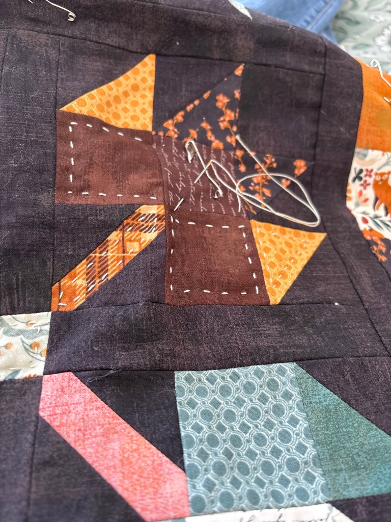 Leaf Pile Table Runner: This one has been languishing so I pulled it out this weekend to do more of the hand quilting on it. There’s 12 leaves and I have 9 of them quilted. Slow progress but some progress on that this weekend.