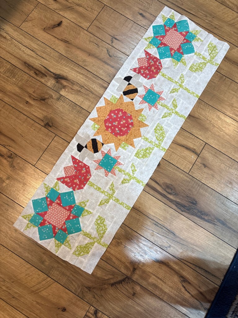1. the finished runner is great. Perfect for.an autumn table setting. Your mom’s runner is so sweet. Those little bees are adorable. Sounds like work is a bit tedious with being short personal. Hopefully they can find someone to hire that doesn’t take much training before pitching in 100%.